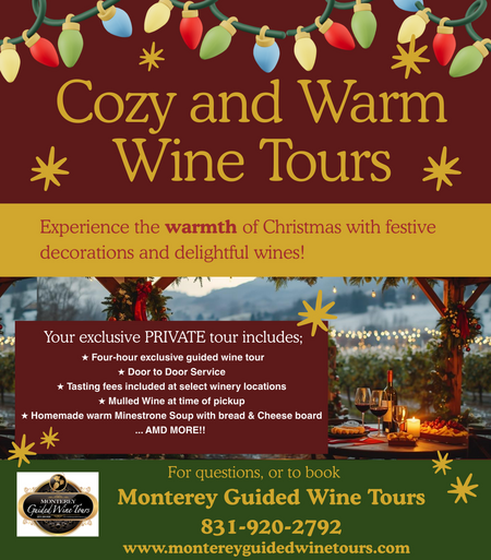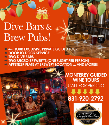 Pick up in the City of Monterey/Carmel-by-the-Sea included. Outside of these areas an additional fee may be required. Please contact Monterey Guided Wine Tours for assistance.