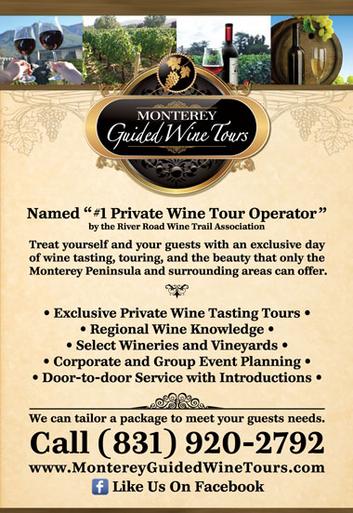 Pick up in the City of Monterey/Carmel-by-the-Sea included. Outside of these areas an additional fee may be required. Please contact Monterey Guided Wine Tours for assistance.